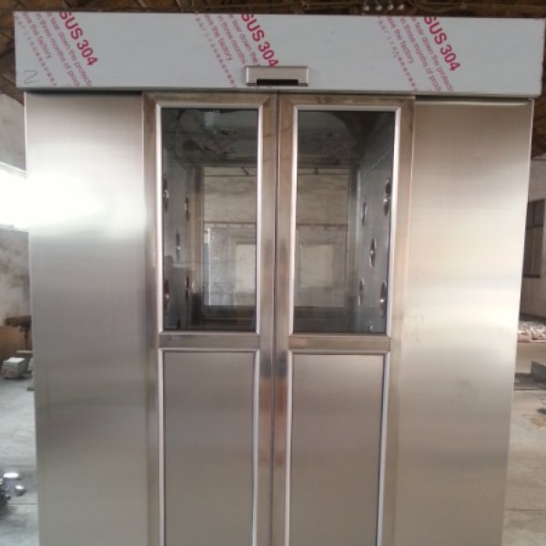一、風(fēng)淋室是人員進(jìn)出潔凈室所必需的通道,并同時(shí)起到氣閘室密閉潔凈的作用,是進(jìn)行人員凈化和防止室外空氣污染潔凈區(qū)的有效設(shè)備。為了減少由于人員進(jìn)出所帶來(lái)的大量塵埃粒子,經(jīng)高效過濾器過濾后的潔凈氣流由可旋轉(zhuǎn)噴嘴從各個(gè)方向噴射至人身上,有效而迅速清除塵埃粒子,清除后的塵埃粒子再由初、高效過濾器過濾后重新循環(huán)到風(fēng)淋區(qū)域內(nèi)。